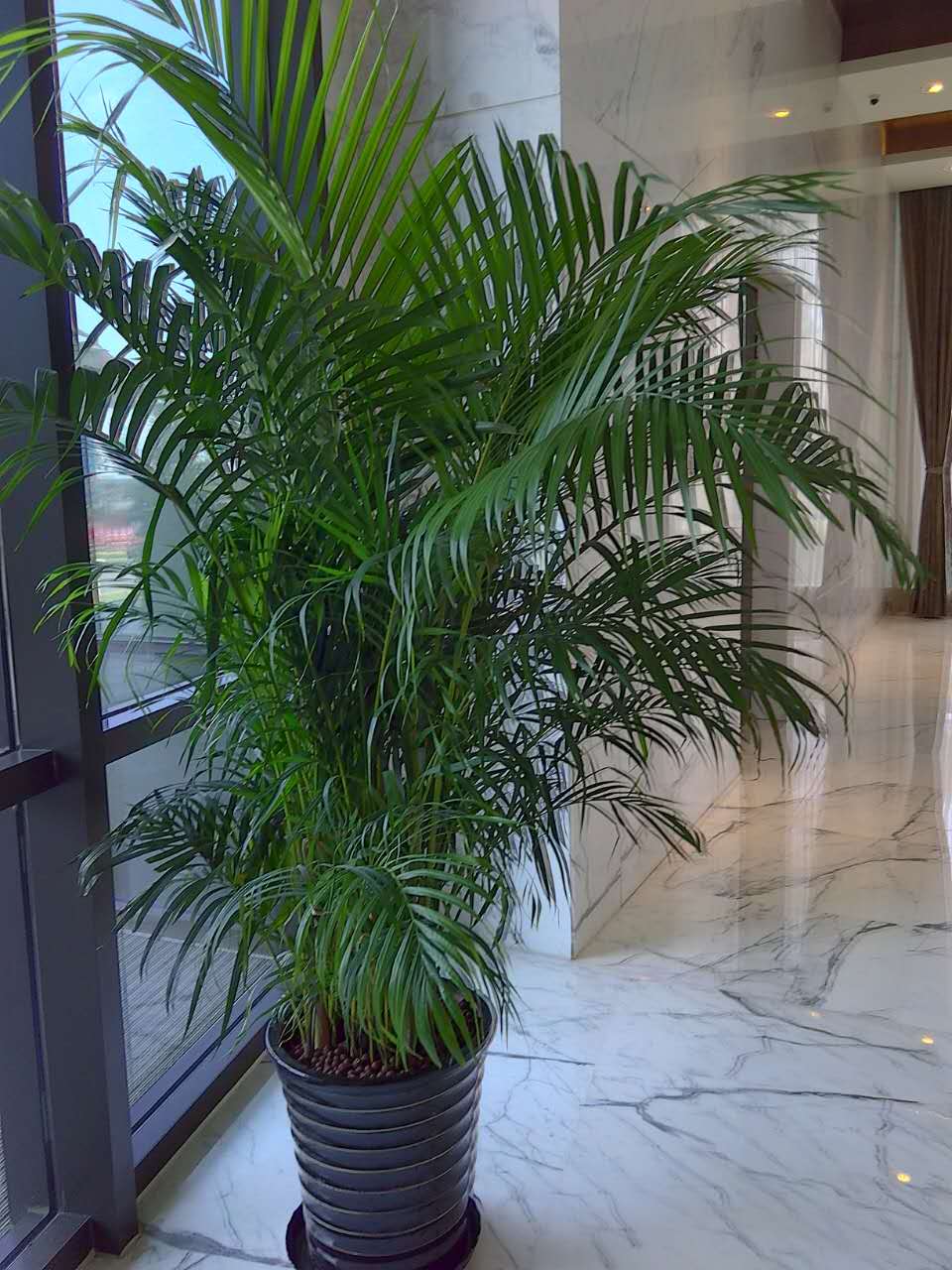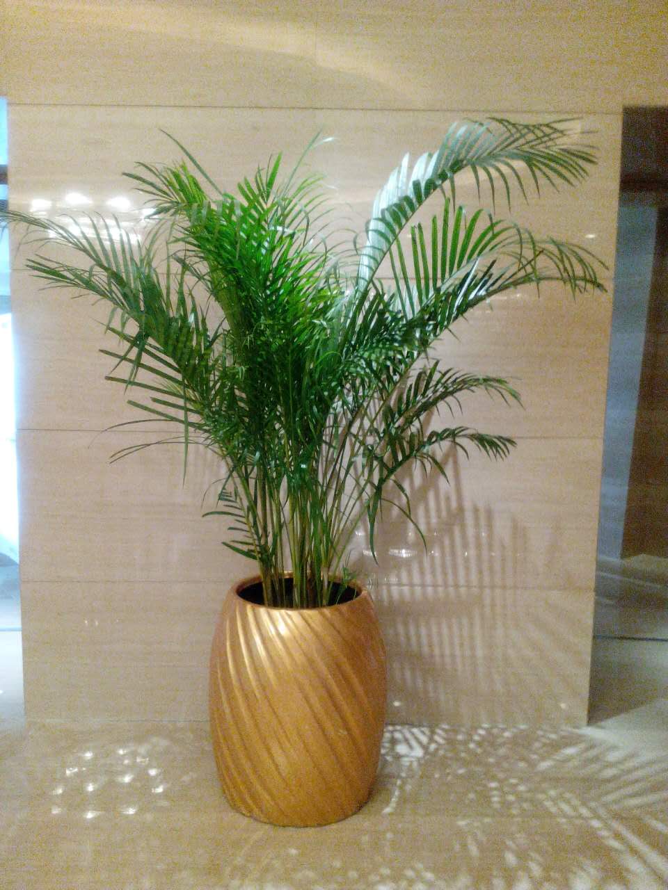 養(yǎng)護:散尾葵怕寒冷,怕強光曝曬,以免灼傷葉片。散尾葵喜半陰環(huán)境,春、夏、秋三季應(yīng)遮去50%左右的陽光。生長適溫為20~25℃,冬季夜間溫度應(yīng)在15℃以上,白天25℃左右較好。若長時間低于5℃,必然受凍害,甚至死亡。在生長季節(jié),需經(jīng)常保持盆土濕潤和植株周圍較高的空氣濕度。冬季應(yīng)保持葉面清潔,可經(jīng)常向葉面少量噴水或擦洗葉面。生長季節(jié)每月施肥1~2次。對土壤要求不嚴格,但以疏松并含腐殖質(zhì)豐富的土壤為宜。盆栽散尾葵可用腐葉土、泥炭土加1/3的河沙或珍珠巖及基肥配制成培養(yǎng)土。每2~3年春季換盆一次,施上基肥。換盆時,應(yīng)清除枯枝殘葉,還應(yīng)根據(jù)生長情況,剪除過于密集的株叢,以利于信株叢的萌發(fā),保持優(yōu)美的盆栽姿態(tài)。
