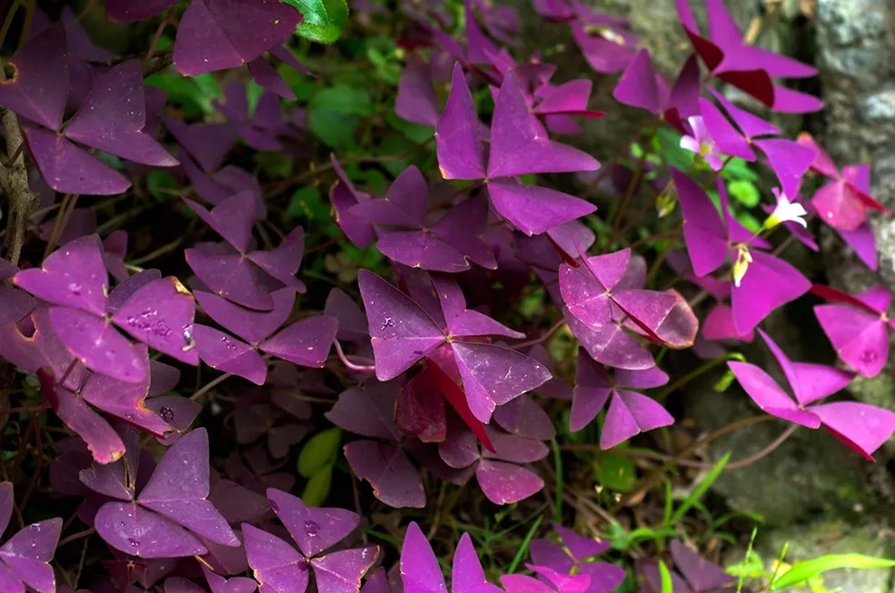 紫葉酢漿草喜歡濕潤半陰、通風良好的生長環境。它的生長速度很快,不論是盆栽或者地栽,用不了多久就能長出一大片來。